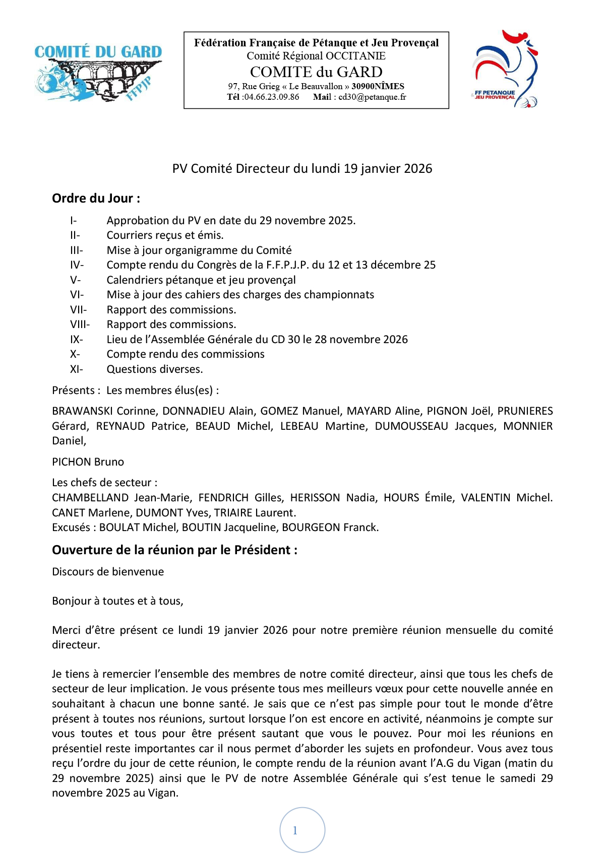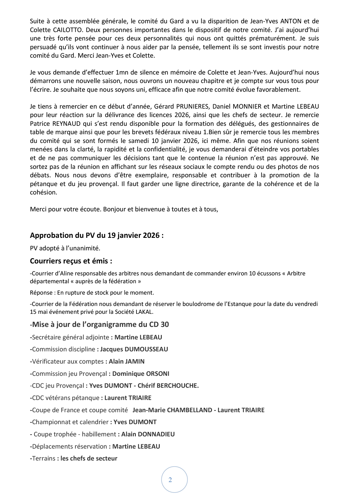PV Comité Directeur - 19/01/2026