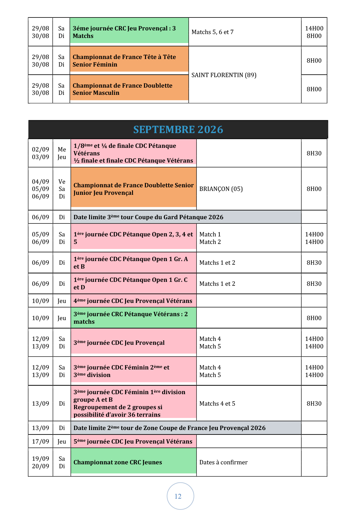 Championnats 2026