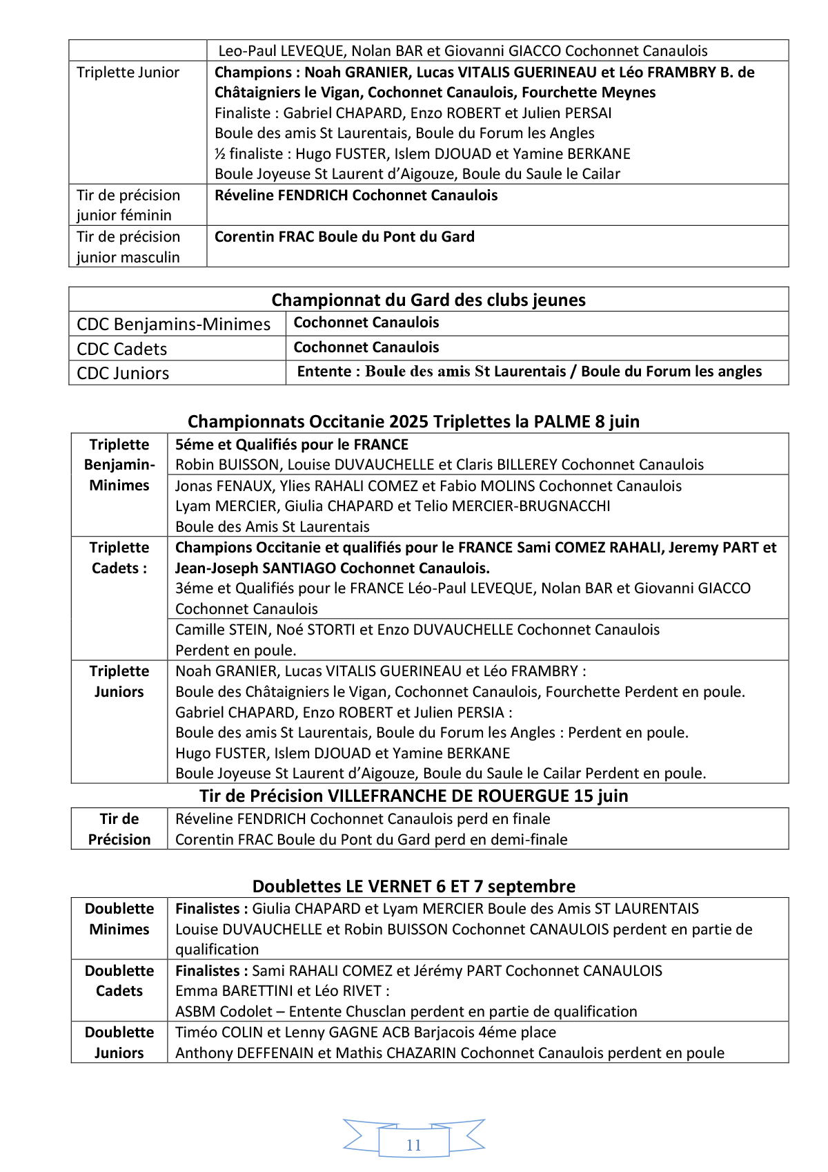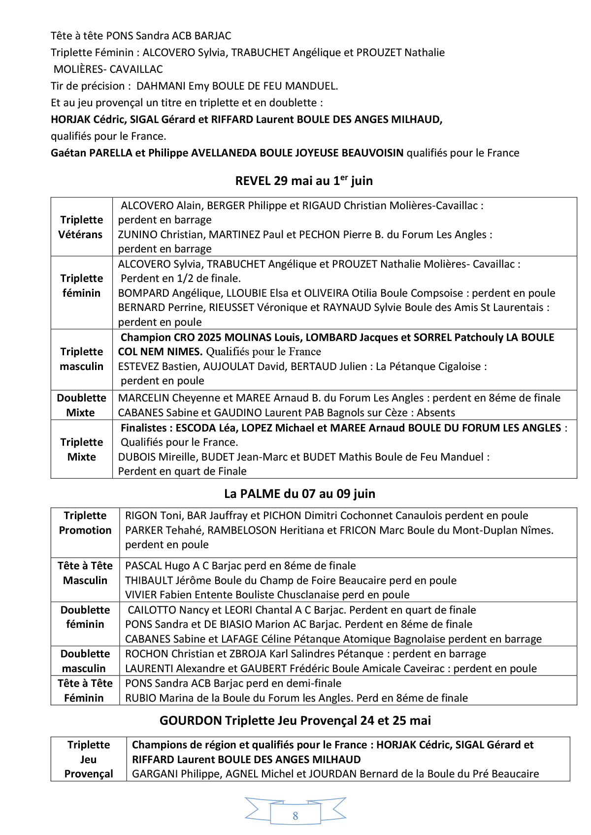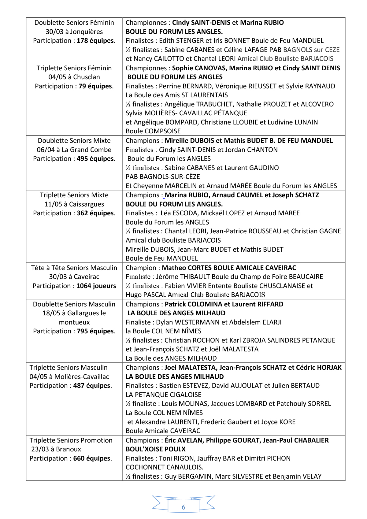 Palmarès Pétanque