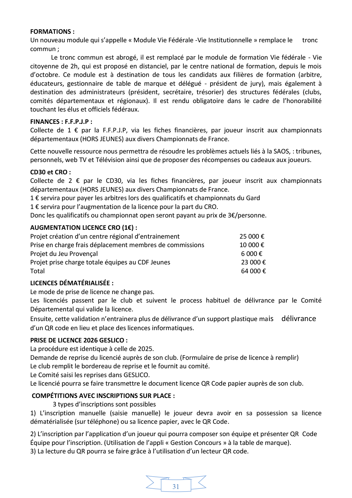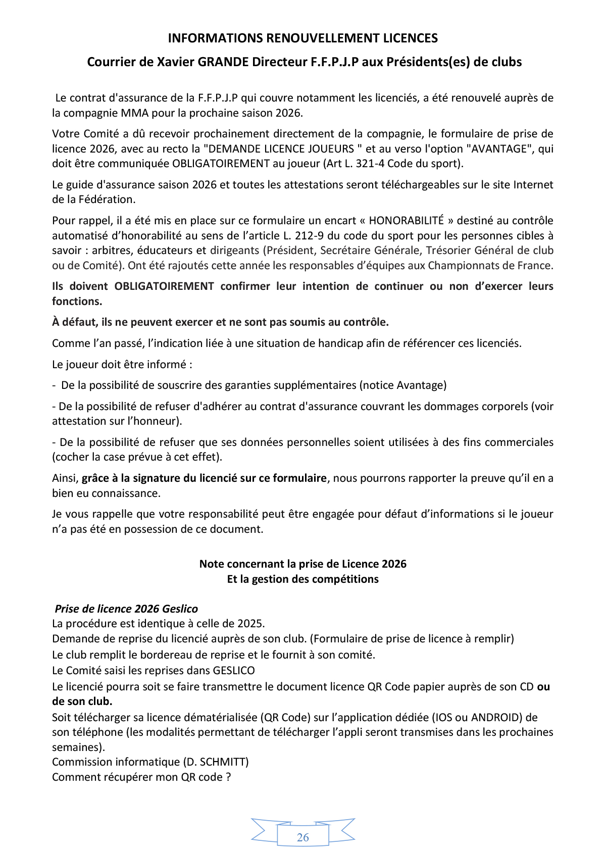 Règlements FFPJP