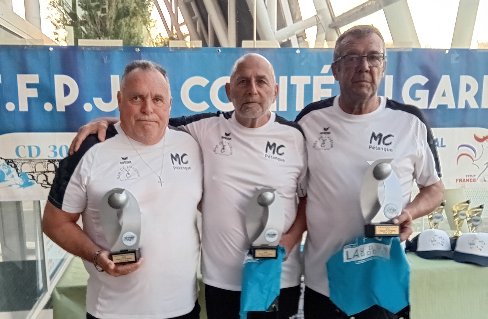 Norbert CAVAGNA, Jean-Yves RUBI et Jean-Claude CYPRIEN (Molières-Cavaillac Pétanque), les finalistes