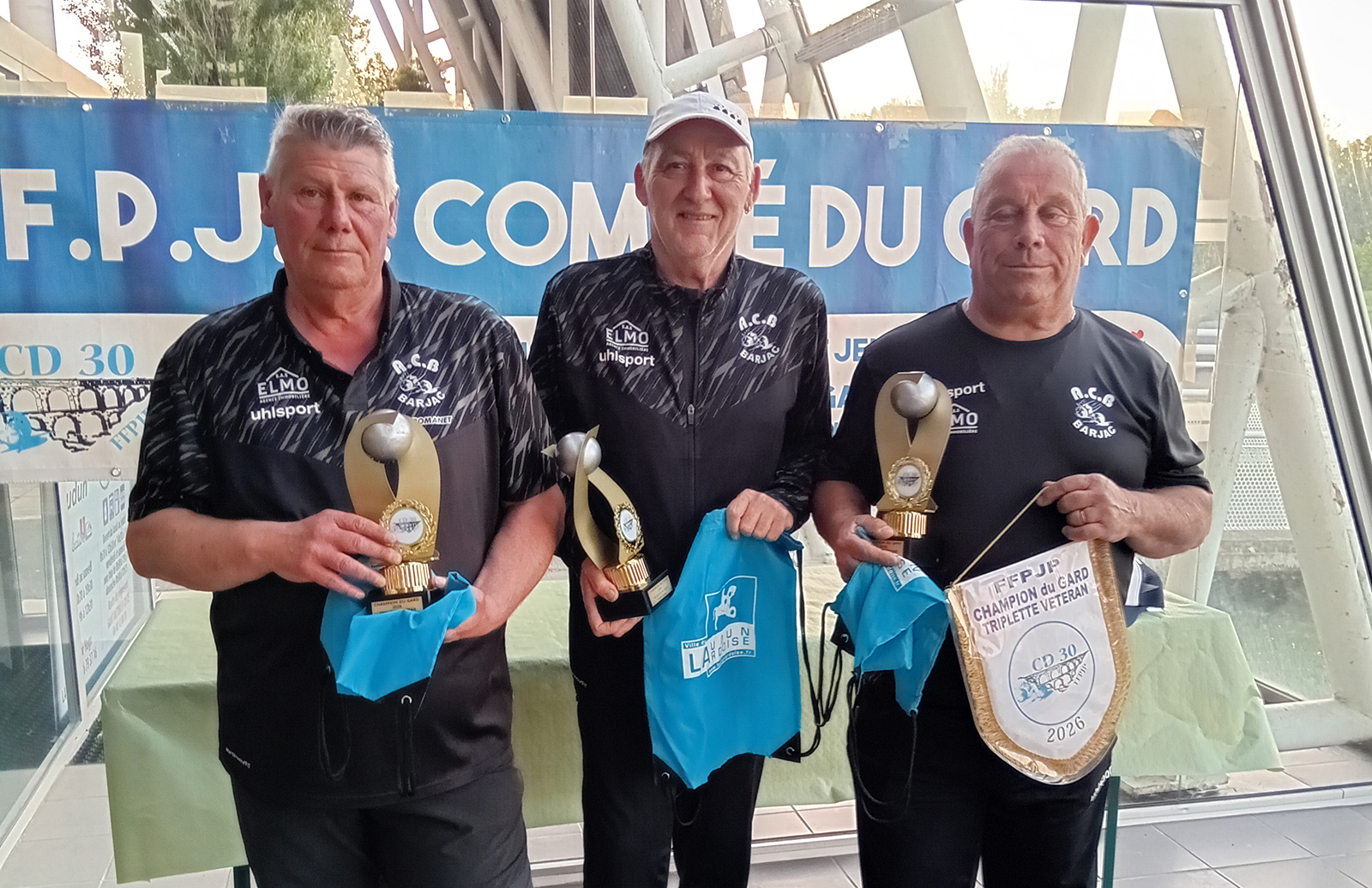 Jean-Patrice ROUSSEAU, Christian PLATON et Jean-Luc GOMEZ (ACB Barjac), les champions du Gard Triplette Vétérans 2026